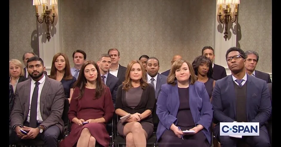 Kellyanne Conway (Kate McKinnon) gives a White House press briefing to introduce Conan the K9 commando service dog.